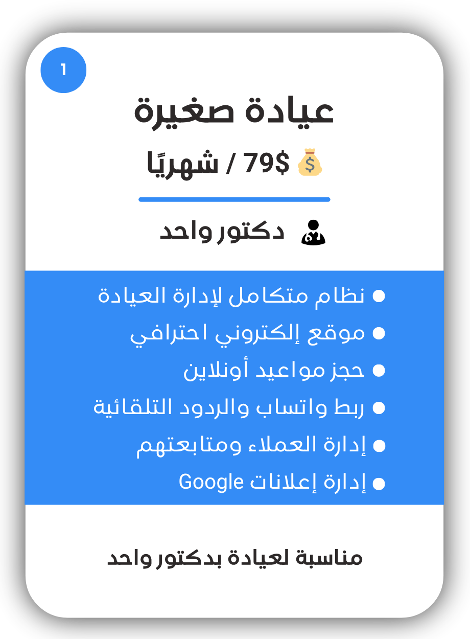 جميع الباقات تشمل نفس الخدمات — الفرق فقط في عدد الأطباء 💡